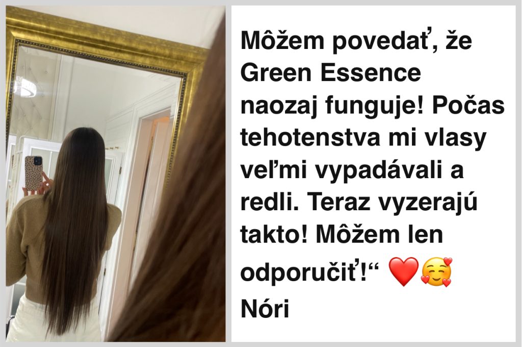 „Produkty na rast vlasov Green Essence odporúčam svojim zákazníkom, pretože to potvrdzujú aj moje vlastné skvelé skúsenosti a moji zákazníci dosahujú naozaj pozoruhodné výsledky v raste vlasov – silnejšie, hustejšie vlasy a množstvo nových vlasov.“